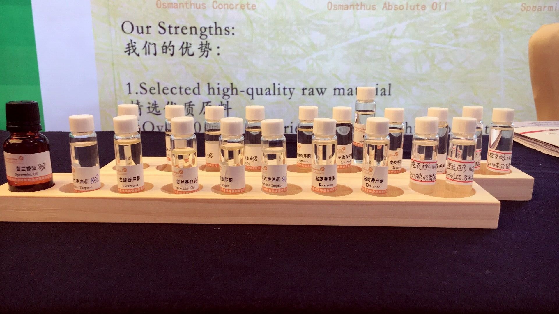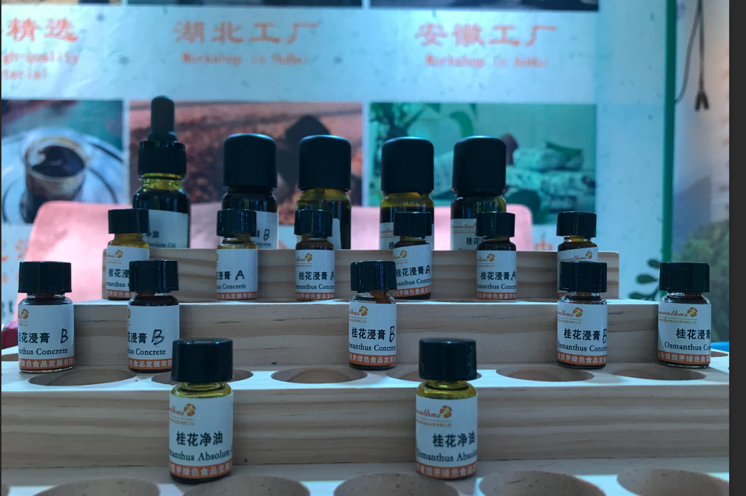 黃山市徽園茅綠色食品發(fā)展有限公司也在我們自己的展位上展示了我們的主營產(chǎn)品桂花系列產(chǎn)品:桂花浸膏、桂花凈油、桂花純露以及今年新出的產(chǎn)品茉莉凈油。我司作為中國數(shù)一數(shù)二的桂花浸膏供應(yīng)商,一直秉持匠心,專研產(chǎn)品,三十多年來我司憑借著優(yōu)質(zhì)的產(chǎn)品質(zhì)量,甜美的桂花香氣以及良好的售后服務(wù)在國內(nèi)外客戶中贏得了良好的口碑。在此次展會(huì)上,我司也吸引了許多國內(nèi)客戶來咨詢產(chǎn)品并獲得了良好的產(chǎn)品評價(jià),而且結(jié)識(shí)了許多行業(yè)內(nèi)的新朋友。此次展會(huì)我們收獲頗豐,不僅與行業(yè)里的前輩互相交流經(jīng)驗(yàn),同時(shí)也向大家宣傳了真假桂花凈油的區(qū)別,為維護(hù)一個(gè)良好健康的香精香料市環(huán)境貢獻(xiàn)出了自身的一份小小力量。我司誠摯歡迎各位業(yè)內(nèi)人士咨詢我們產(chǎn)品,與我們攜手合作,讓中國特有的桂花走向世界,讓桂花香飄滿世界各個(gè)角落。