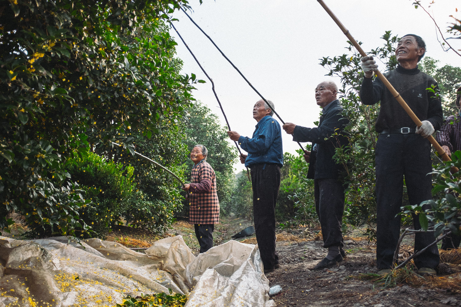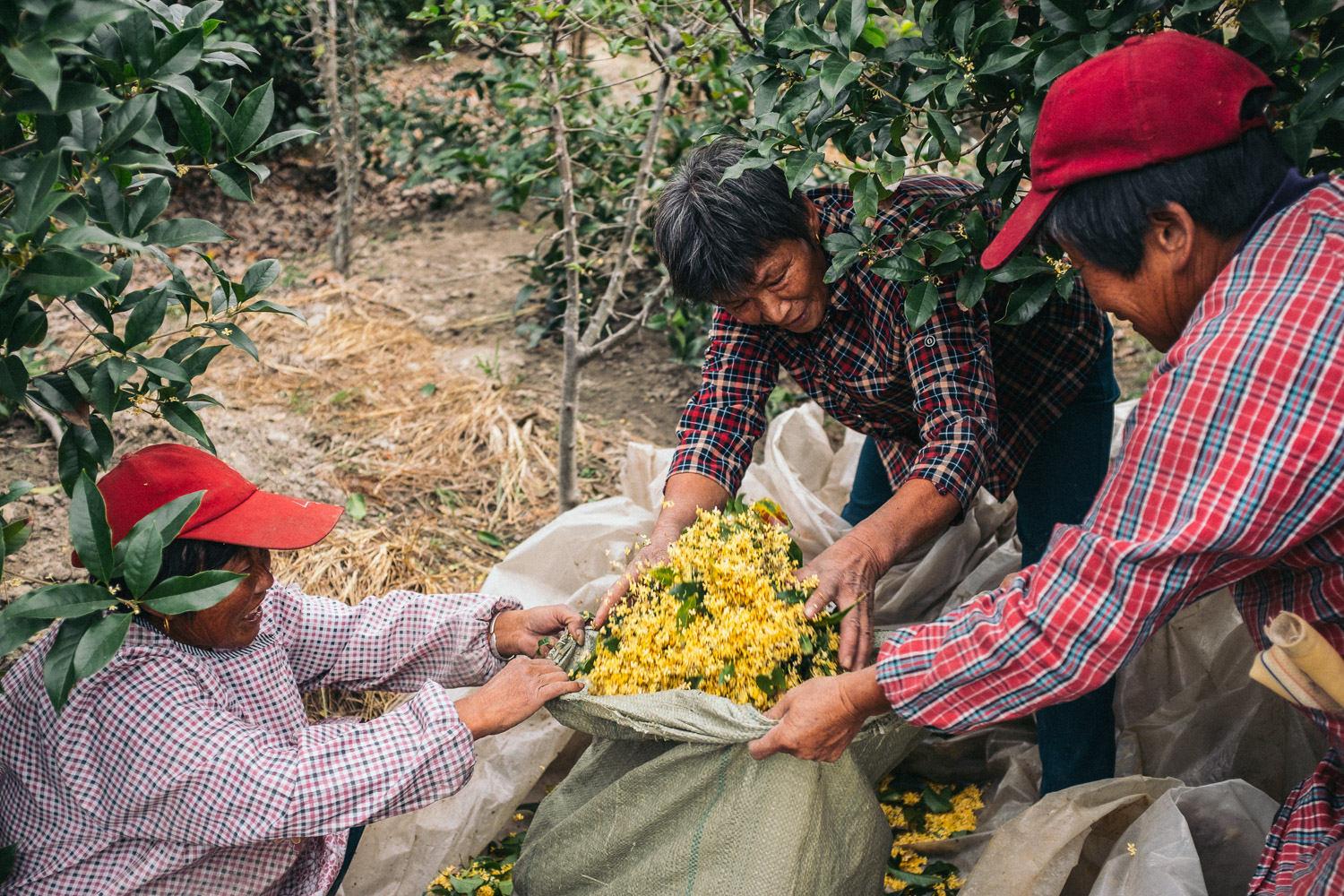 During the picking and purchasing period of osmanthus flowers, we visited several major raw material producing areas of osmanthus flowers in China -- Anhui, Zhejiang, Jiangsu, Hubei, Sichuan, Guangxi and other places. We have visited osmanthus planting fields and forests during this trip, and they have participated in the whole process of osmanthus picking, purchasing, salting and producing. All of us gained a lot.