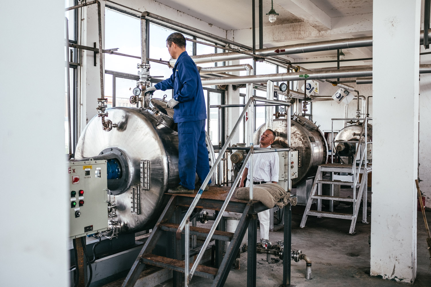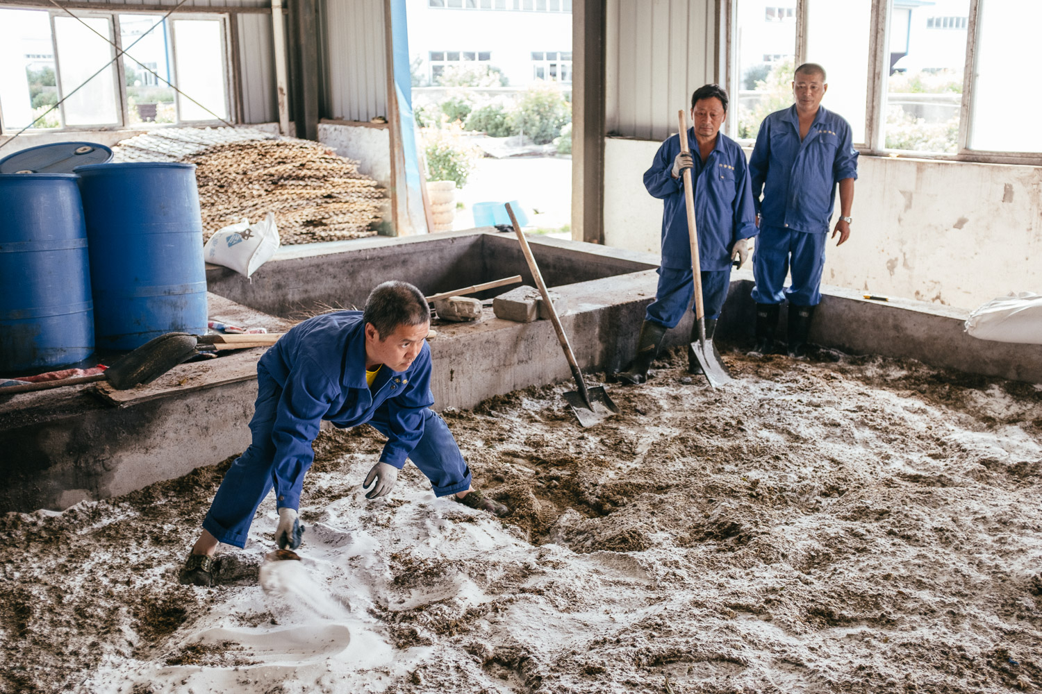 Now they are doing the salting process in order to keep the flowers’ aroma because if the fresh flower don’t be salted in 24 hours, sweet aroma will exhale from the flowers. The workers are try their best to make sure the new batch of osmanthus concrete production.